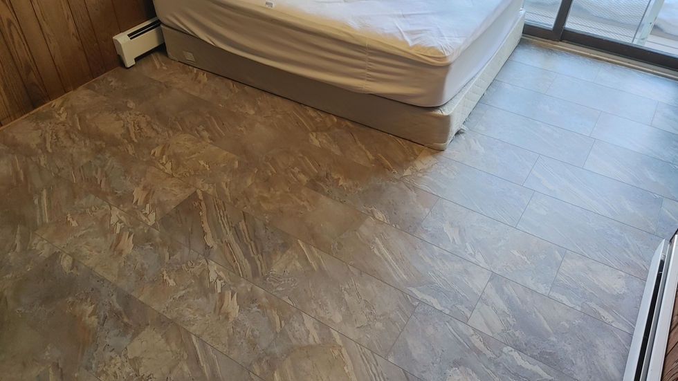 Laminate vinyl tile (LVT) installation in this cozy mountain cabin-home. Transition strip craftsmanship (level changes throughout house).